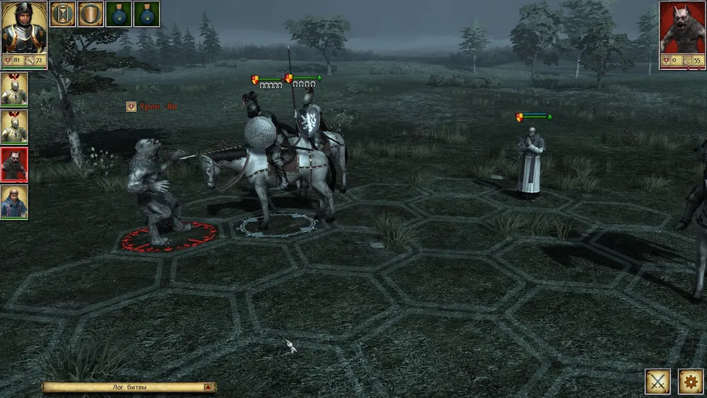 Герой не мог этого допустить, и после короткого боя инквизиторы прекратили своё существование. Но такой вариант тоже не устроил рыцаря; пришлось обращаться с молитвой к своему покровителю; а затем спасаться бегством через всю карту… Зато инквизиторы остались сы… э-э… довольны, и волк уцелел.