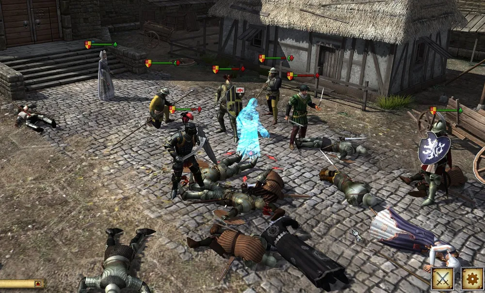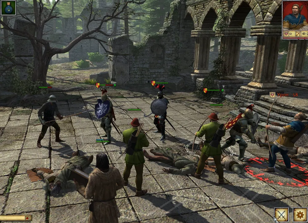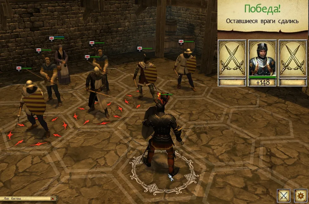 И что прикажете делать с этими грудами великолепного снаряжения, большинство из которого подходит для стражников, лучников, пикинёров и тяжёлых пехотинцев? Где их искать и на ком тренировать? Все ранее доступные для найма места либо разрушены, либо захвачены; не нищими же из лагеря беженцев пополнять отряд? Впрочем, первое же столкновение с врагами, захватившими замок героя, показало - никакие дополнительные воины не нужны: имеющаяся пятёрка отлично справилась. Что неудивительно: при всеобщем запустении и отсутствии серьёзных противников уровень захватчиков всех мастей также падает; где им противостоять закалённым во множестве боёв рыцарям?