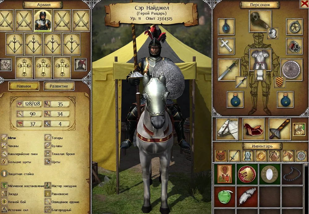 Дождавшись ночи, герой вёл туда единственного кандидата в рыцари и уходил в глухую оборону, предоставляя оруженосцу возможность набирать опыт. Вскоре отряд пополнился паладином. Почему паладином, если сэр Найджел всегда предпочитал, чтобы в бою справа и слева от него были рыцари? Чутьё опытного воина говорило, что в будущем может попасться артефакт, доступный только паладину – не упускать же такую возможность? Разумеется, герой не забыл экипировать оруженосца-паладина амулетом алхимика. Чуть погодя в отряде появился и рыцарь; можно было договариваться о встрече с ландграфом – его посыльный уже пару недель сидел в таверне, пропивая своё жалованье и ожидая, когда герой соизволит обратить на него внимание.
