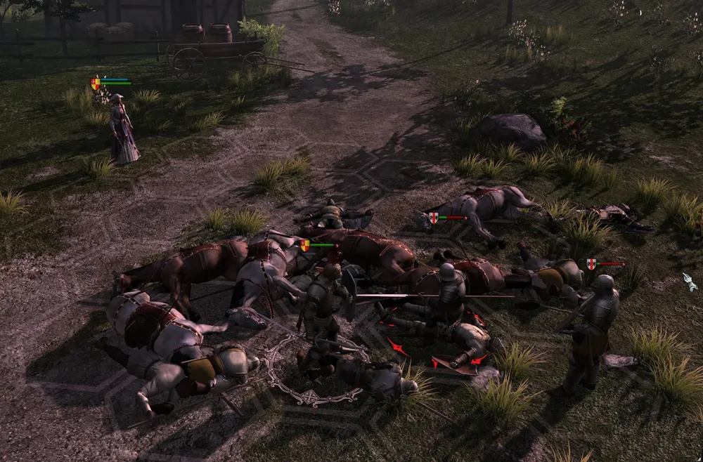К счастью, на помощь рыцарю неожиданно пришла любовь всех наёмников к лёгкой наживе: увидев прошедший мимо довольно слабый отряд разбойников, вражеские отряды с гиканьем и свистом устремились в погоню, и думать забыв о патрулировании дороги. Герой объединился со спутниками и приступил к планомерной зачистке местности от врагов. Далеко не все сражения проходили легко и быстро…