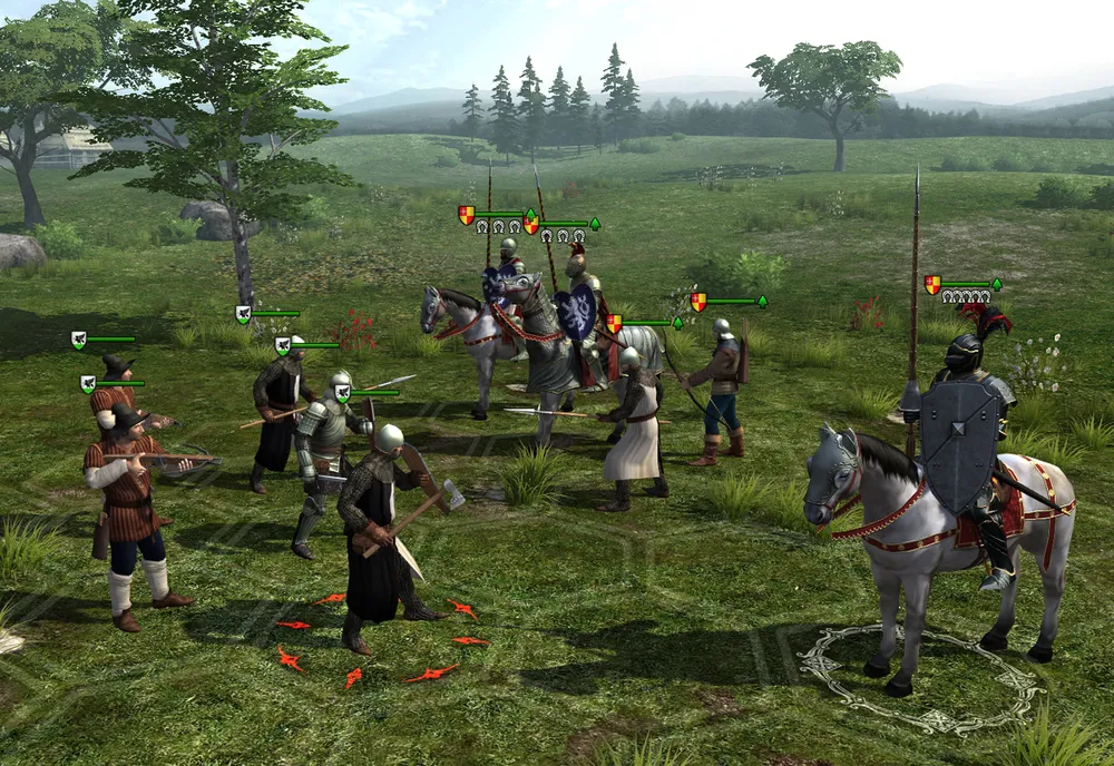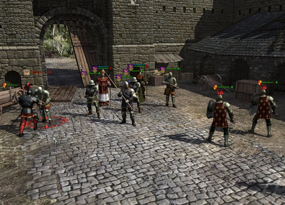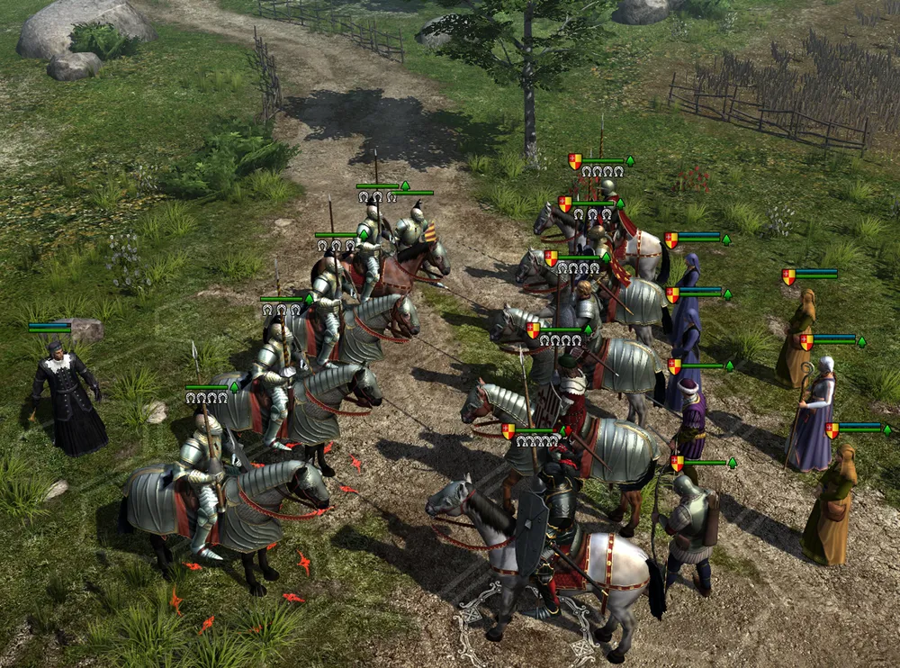 Пересечён брод, таверна уже совсем рядом, как вдруг на встречу отряда сэра Найджела выехал более многочисленный конный отряд, а следом, из заставы, появились копейщики. Какие-то нахалы осмеливаются лишить усталых путников доброй кружечки пива?! Так вот же вам!