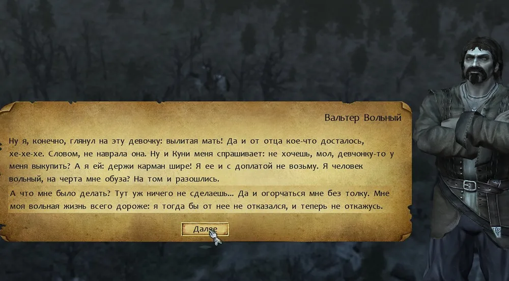 Итак, дело сделано, можно отправляться дальше? Но рыцарь рассчитывал набрать ещё немного опыта и поискать некоторое снаряжение, поэтому отправился в одиночное странствие: на болотах всё ещё можно было встретить бандитов. Далее произошла история, доведшая героя до состояния исступлённого бешенства…