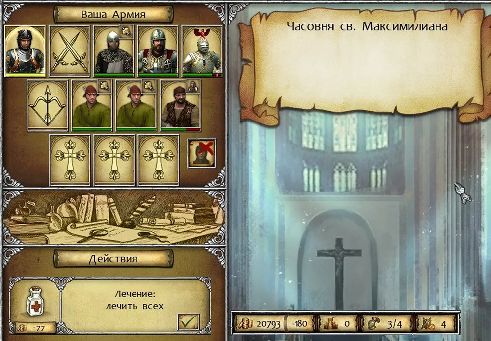 Герой вернул отряд к часовне, вылечил всех, и взял штурмом заставу.