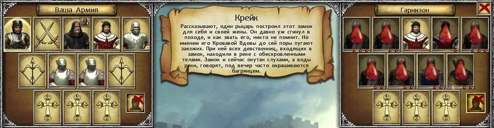 К отряду примкнул приор Мориц? Можно попытаться взять штурмом замок Крейк, если не получается своими силами – наймите искателей удачи; золота должно быть в избытке. Как только удастся захватить замок, дожидайтесь ночи – враги, как правило, предпочитают спать в тёмное время суток – оставляйте в замке всех спутников и бегите в свой шатёр, за подкреплением.