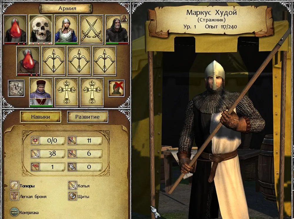 Освятить же оружие можно, купив в храме крестик. Который, к тому же, освящает не только меч, но и копьё конного рыцаря… Вот так и получилось, что «очень сложный» рыцарь до самого финала рубил врагов «Корой», а «сложный» - чертыхался, читая его заметки, и проклинал собственную недальновидность. Однако, обо всём по порядку.