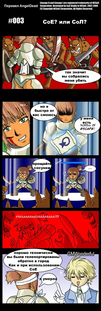 Древние, но за-то поднимает настроение. Оч замечательный комикс. Вот жду того момента когда NCSoft нарисует чтоли фильмец Lineage. Было бы прикольно, причём очень!!!