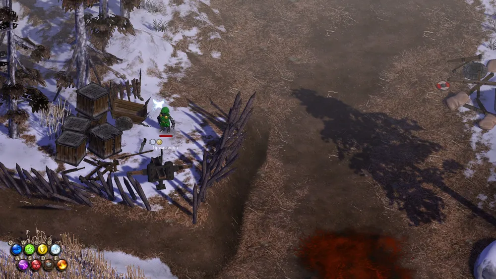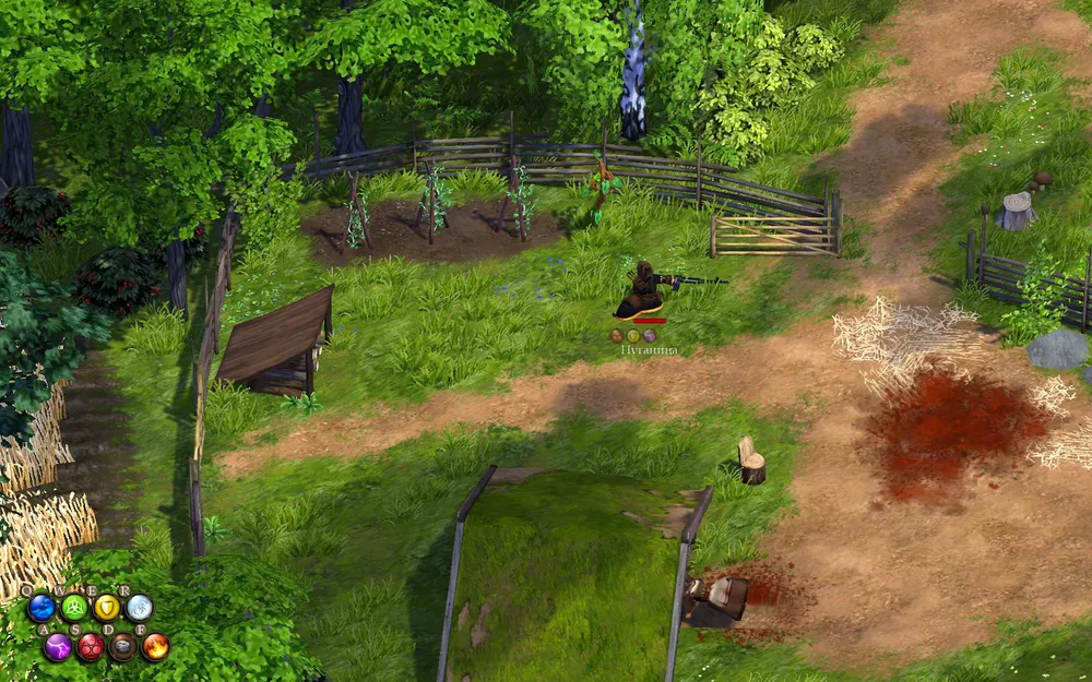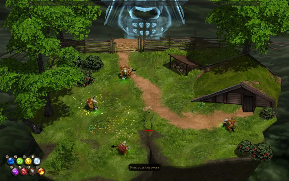 Действие: призывает защитника - дерево (В игре почему-то написано "опутывает жертву корнями")