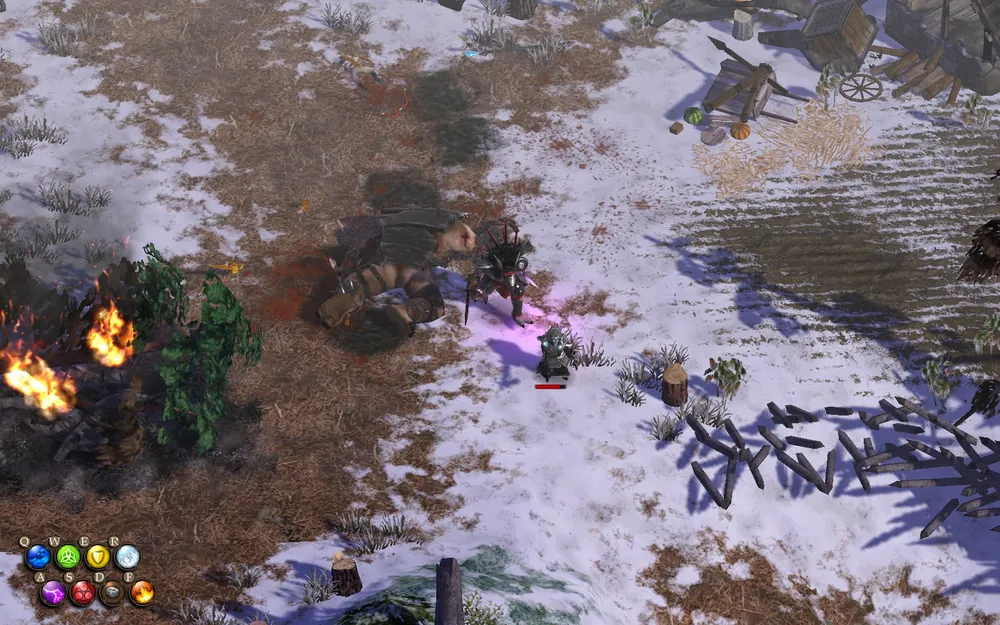 В том месте, куда приезжает перемалователь, сверху лежит Клинок стужи, и его закрывает огонь. Огонь надо потушить, либо наложить на себя щит от огня.