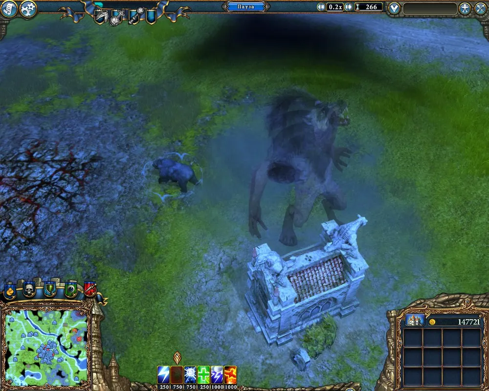 Медведь производит разведку, магические башни и заклинания разрушают строения.