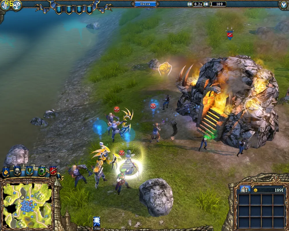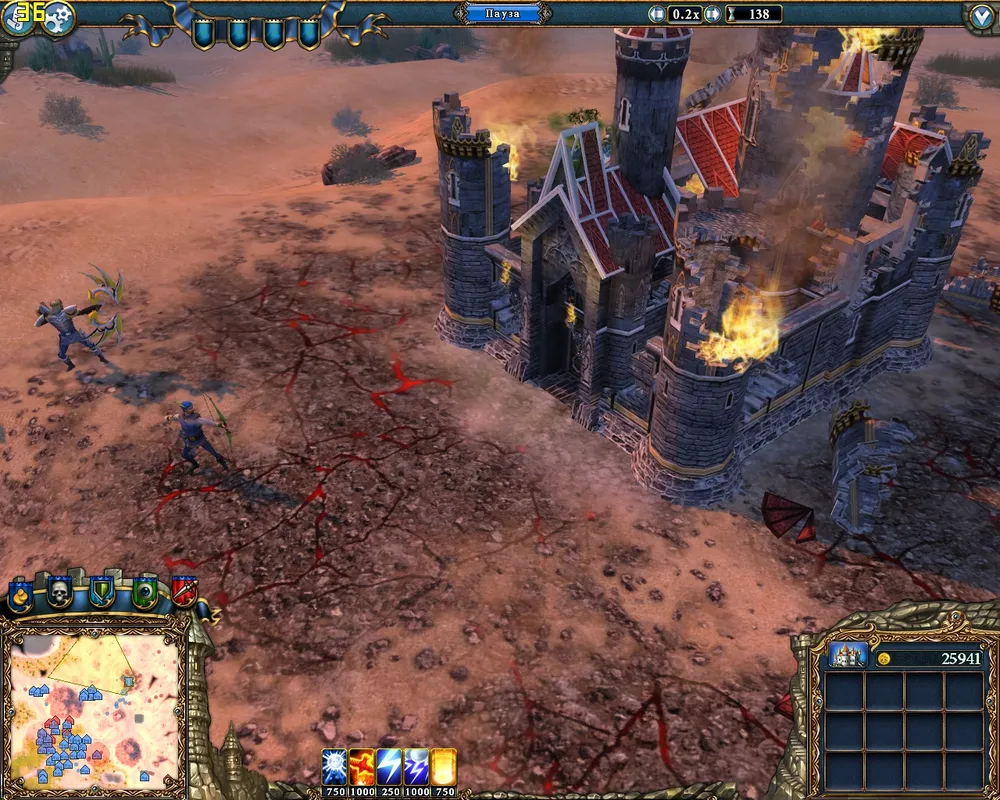 Как только башни, охраняющие замок, будут уничтожены молнией – можно посылать героев в атаку. Самая простая из миссий.