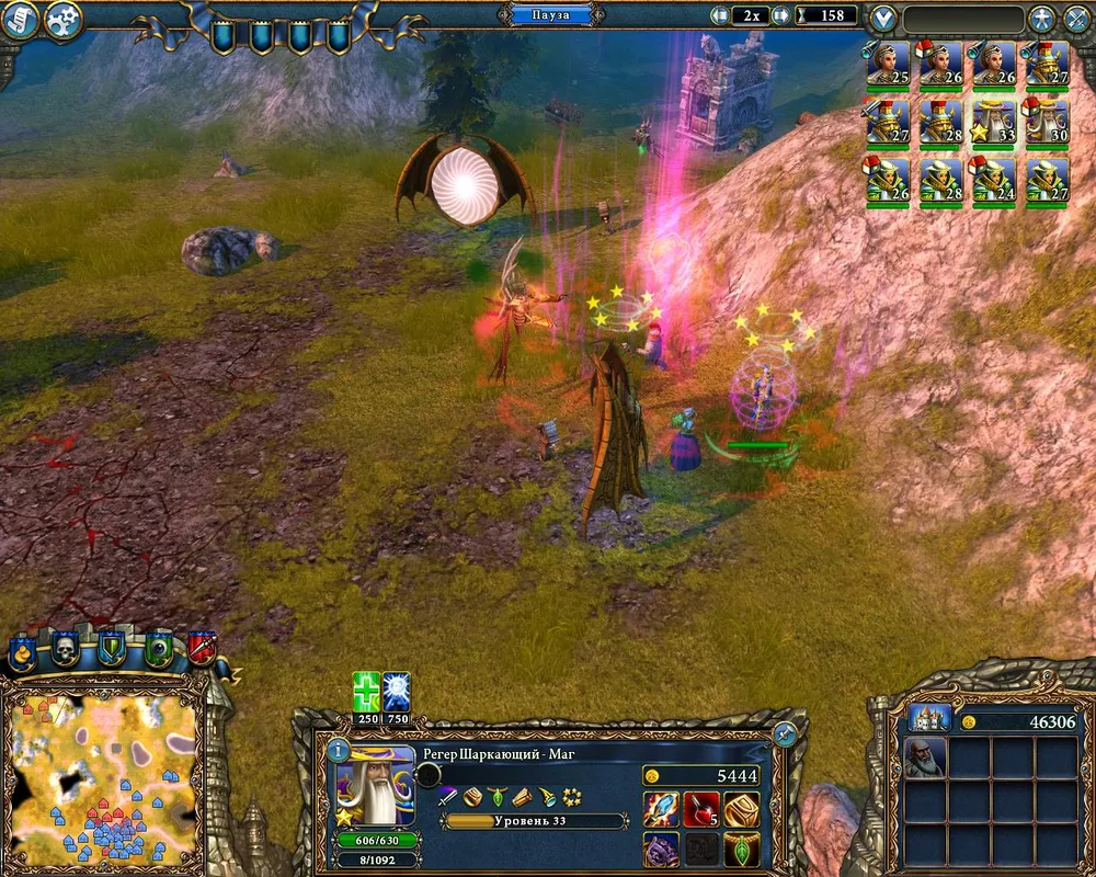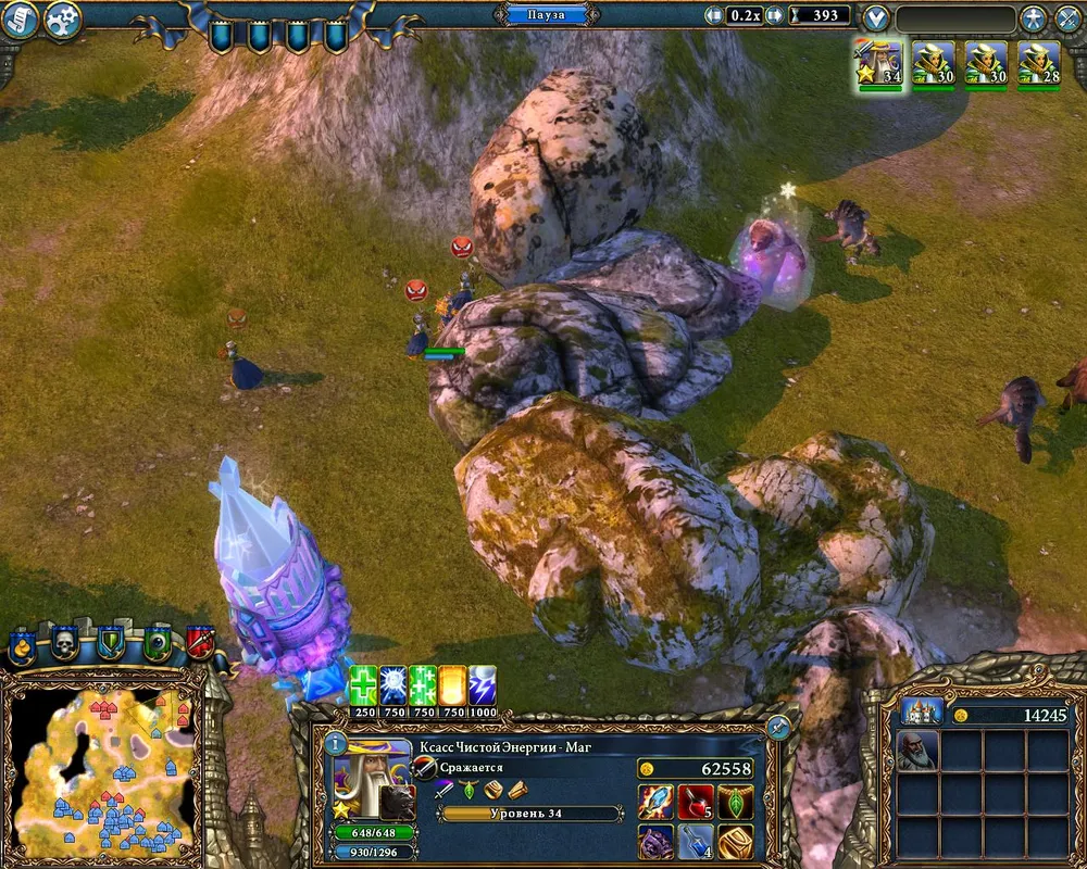 Зачищайте территорию, создавайте отряды в составе мага и пары жриц Агрелы. Как только маг и жрицы будут полностью экипированы, разрушайте храм Дауроса: монстров, хлынувших на карту, вполне достаточно для достижения одним из магов 35 уровня.