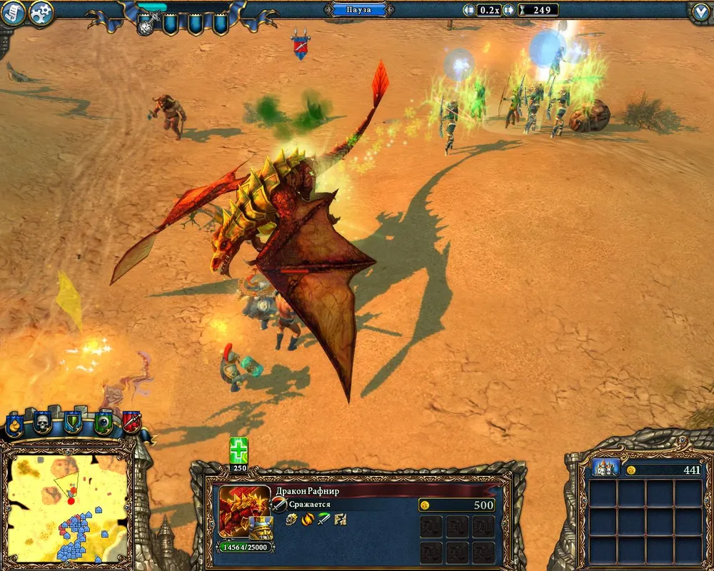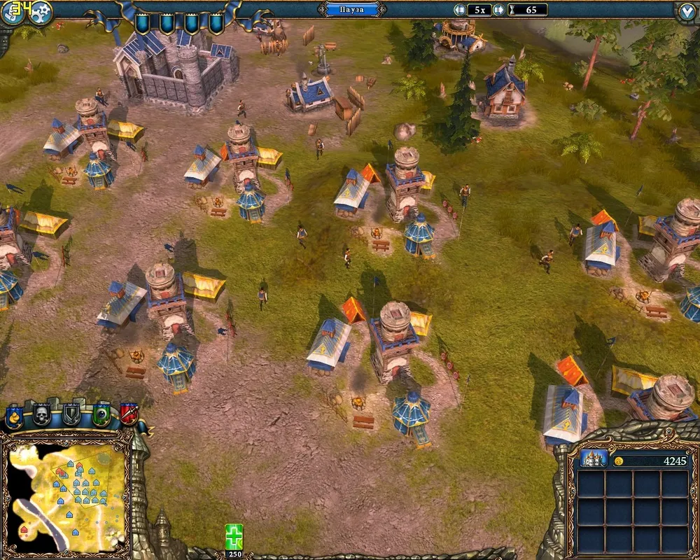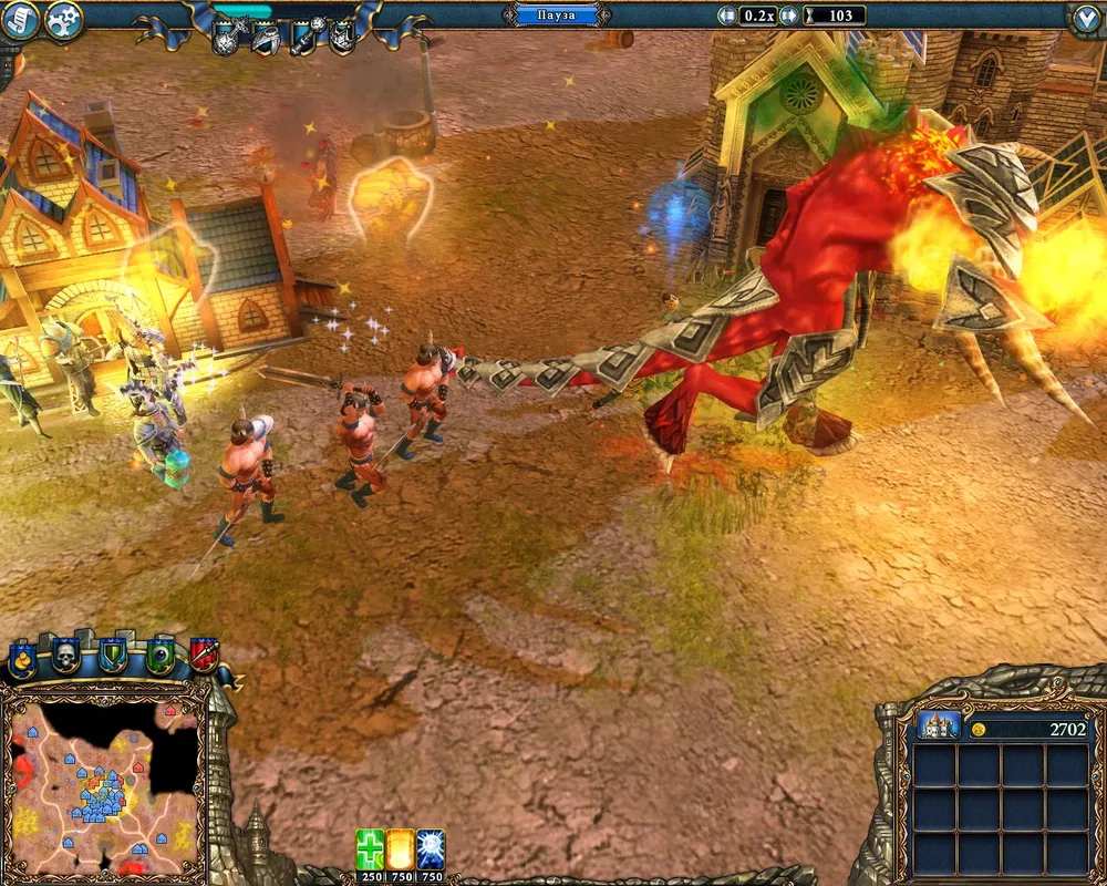 Знакомство с Андревусом начинается с его довольно мощных магических атак на замок. Уничтожить замок таким образом ему не удастся, а вот разрушить гильдии и убить начинающих бойцов – запросто. Поэтому все постройки стоит возводить как можно ближе к нижнему, южному краю карты.
