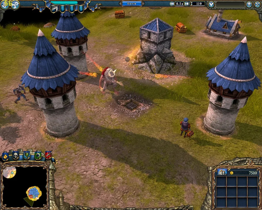 Даже если пещера дракона уже обнаружена вашими героями, её хозяин – если только его не спровоцировать атакой - ни за что не нападет на замок до тех пор, пока не будут уничтожены огры. Это стоит использовать – разрушить что-то крупное и важное эти громилы с дубинами просто не успеют, а крестьянские домики возводятся очень быстро.