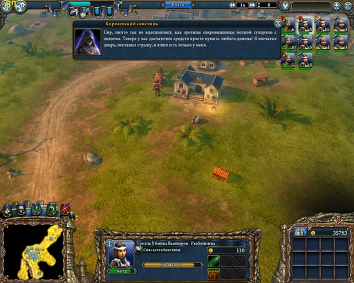 Не унывайте, Сир - у вас же есть лорды! Первым делом строим зал Лордов и приглашаем разбойницу – наступил её звёздный час. Девушка быстренько проведёт разведку, разрушит ближайшие логова – а тем временем в казне потихоньку накапливается золото.