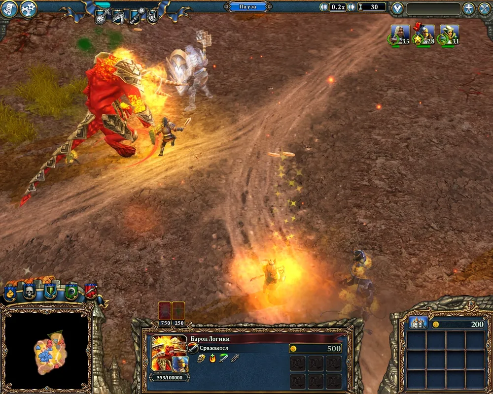 Плохая новость, Ваше Величество – у Барлога довольно большая армия огненных элементалей, причём её численность со временем только возрастает. Вторая плохая новость: Барон Логики может напасть на ваш замок практически в самом начале миссии, пока вы ещё совершенно беззащитны.