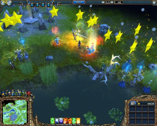 Следующая задача – построить поселение гномов и окружить город их башнями. Как только это будет выполнено – можно считать, что победа у нас в кармане. Атаками или заклинаниями очищаем территорию и добираемся до шамана. Словно в насмешку, после его уничтожения всем героям поднимут уровни – а зачем они теперь, когда миссия практически закончена?