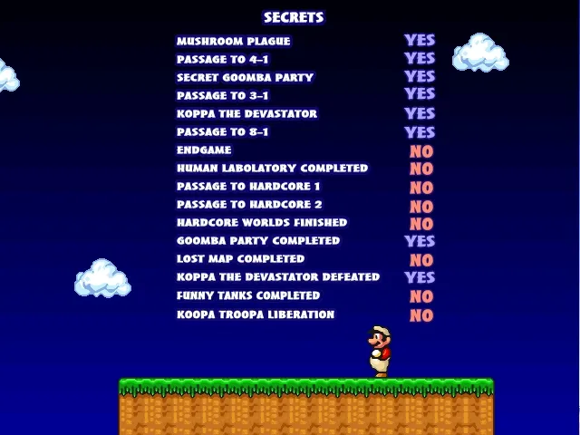 Изучите нулевой мир Mario Forever: мини-игры, уровни с уникальными врагами и секретами. Вспомните классические моменты с Марио, исследуя забавные локации и преодолевая трудности. Присоединяйтесь к приключению в мир, где правят черепахи!