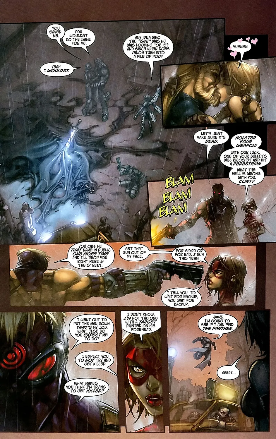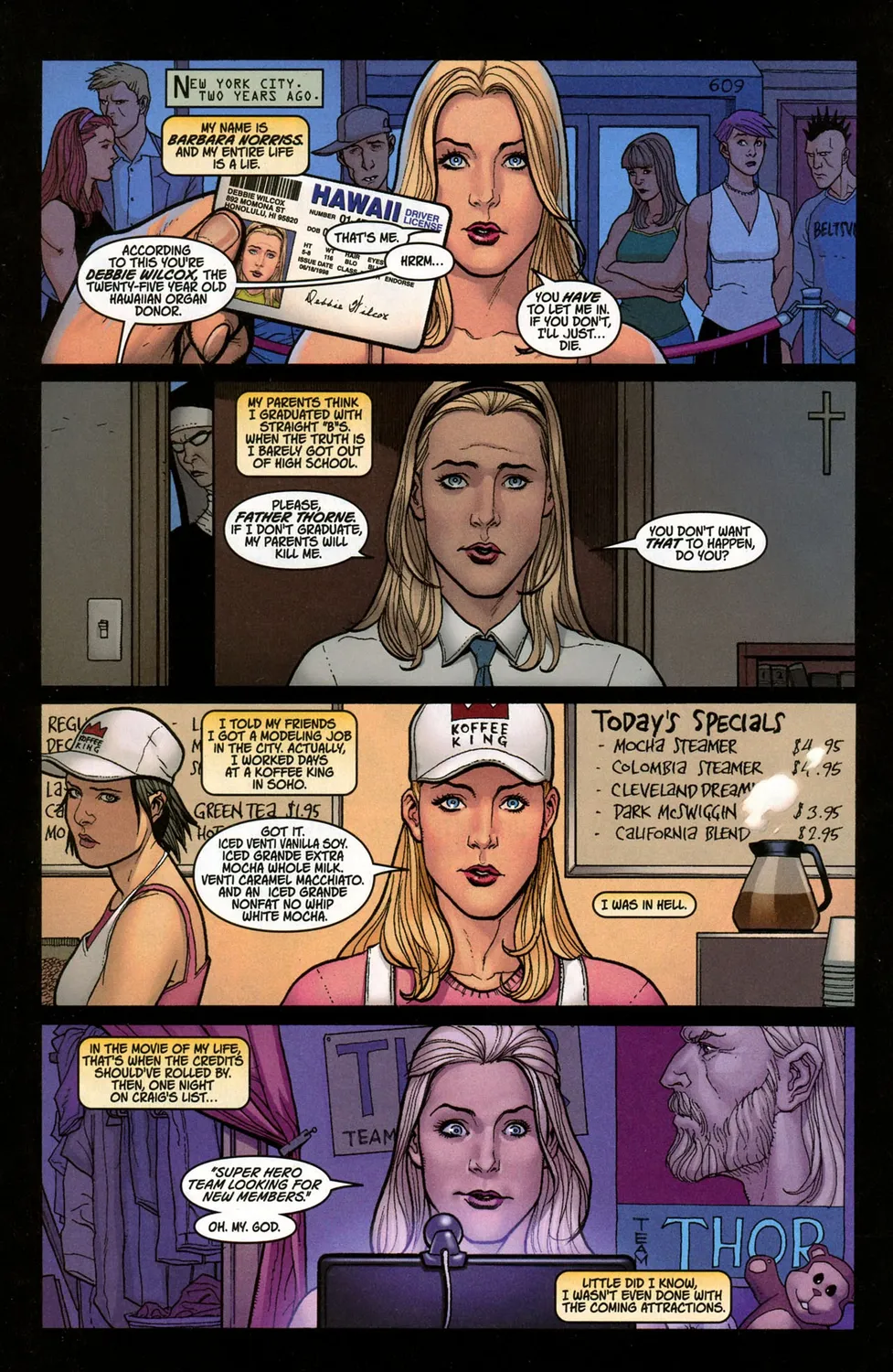 Защитники привлекают внимание Тони Старка, и он предлагает им сотрудничество. Так она знакомится с Тором и у них начинаются любовные отношения. Он дарит ей меч. Чуть позже выясняется, что у Барбары появились сверхспособности, но я не буду раскрывать тайну их получения. Это можно прочитать в комиксах.