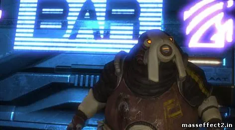 Вдруг бокалы на стойке задрожали, а жидкости в них подернулись рябью. В бар тяжелой походкой вошел невероятных размеров кроган. Он неспешно оглядел заведение и медленно направился к стойке, сотрясая помещение тяжелой поступью.