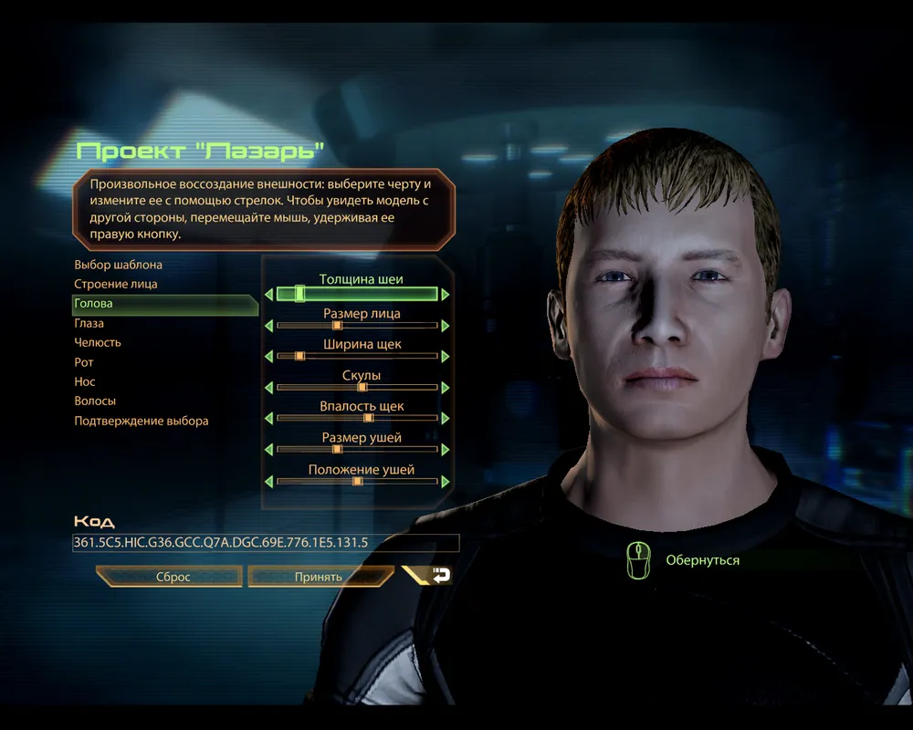 Хотя данные о спектрах хранятся в архивах, новоявленные товарищи Шепарда просят уточнить о себе некоторые подробности. Тут то и появляется интерфейс создания персонажа, знакомый всем еще по первой части.