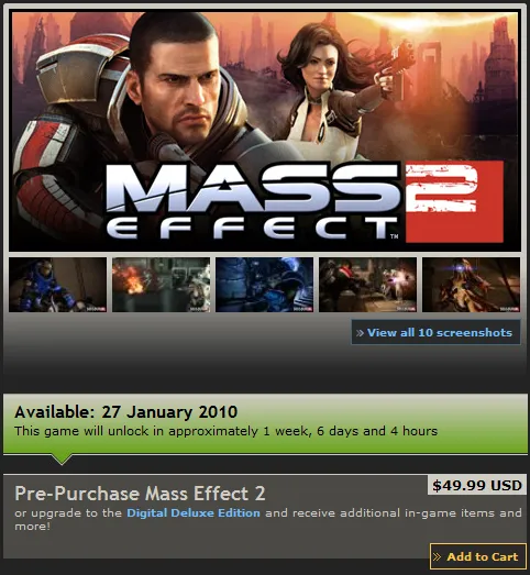 * Оригинальный саундтрэк - The Mass Effect 2 original soundtrack features 12 pieces spanning the entire Mass Effect 2 experience.