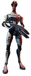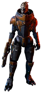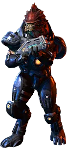 Кроган - олицетворение брутальности и первобытной силы, в ипостаси Стража приобретает даже еще больший атакующий потенциал, чем Солдат. Обладает способностью убив несколько противников в рукопашной, впадать в боевое исступление, увеличивающее защиту и урон ближнего боя. Притом каждое убийство обновляет таймер, позволяя продлевать эффект вплоть до смерти последнего врага. Класс эффективен против ВСЕХ.