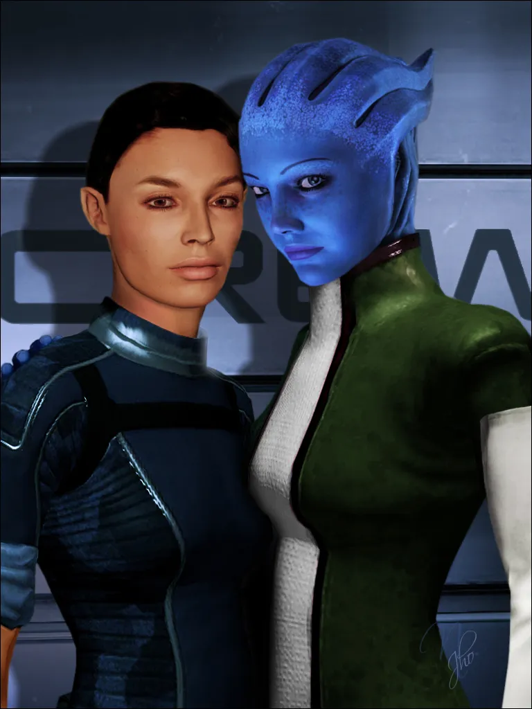 Шепард как мужского, так и женского пола может завязать романтические отношения с Лиарой. Если Шепард мужчина, то между Лиарой и Эшли вспыхивает конфликт на почве ревности. Если Шепард - женщина, то конфликт возникает соответственно с Кайденом. Лиара действует открыто и приводит Эшли/Кайдена к капитану с просьбой разобраться и выбрать кого-то одного.