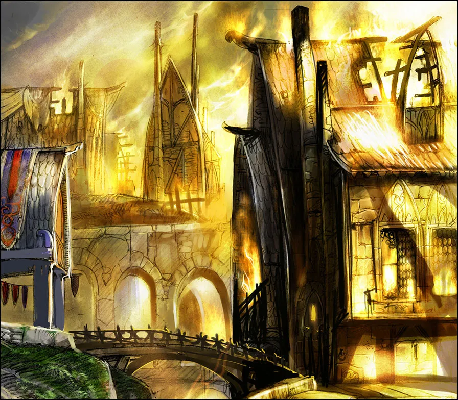 Ночью 10-го месяца Танцующих огней был ограблен и оставлен истекать кровью член муниципалитета, служащий Гончей; тогда же дом, принадлежавший вотчине Единорога, был предан огню вместе с семьёй. Каждая сторона поспешила предать суду и обвинить другую в столь гнусных преступлениях. Не имело значения, кто прольёт первым кровь, был нужен лишь повод. Для войны. К вечеру следующего дня от Девичьего пути остались лишь дымящие руины и изувеченная груда тел. Гончая вышла победителем — если эту мясорубку можно было назвать победой. Двумя днями позднее Ровена, Рыжерожденная из Йорвика, отправила послание Энгерранду, требуя объяснений. Он рявкнул дерзко и грубо — ни одному сеятелю беспорядков ни уйти от грозной лапы Гончей. Напряжение достигло апогея. Слово, которого никто не смел произнести, было сказано.