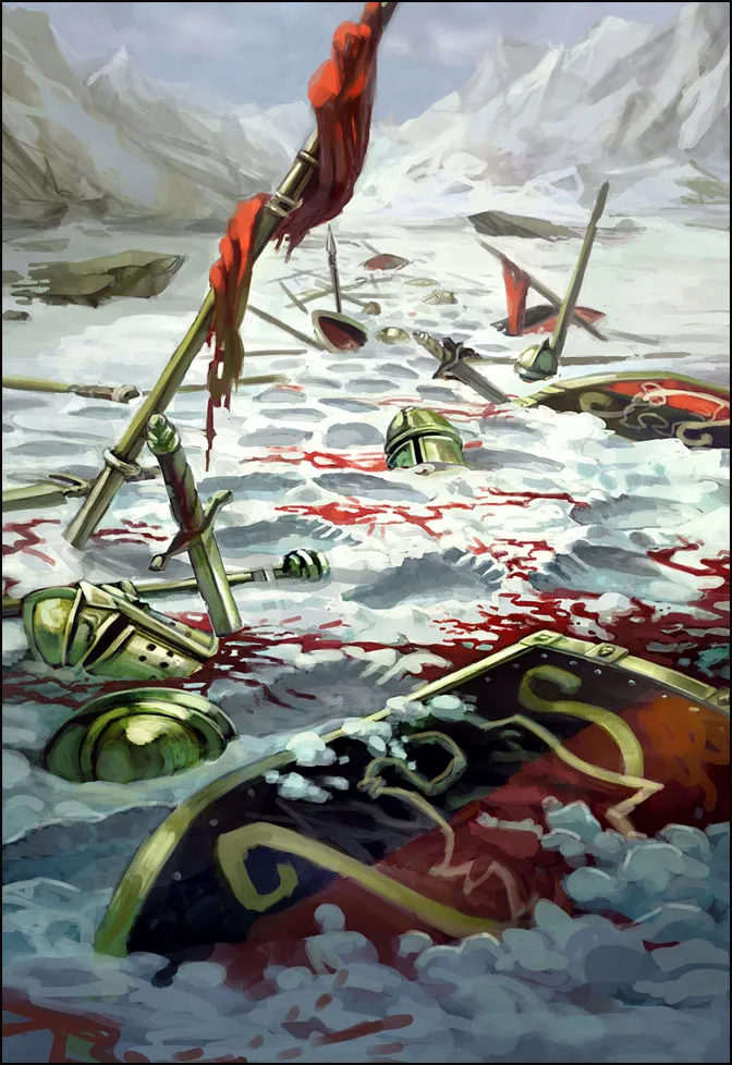 Шёл тринадцатый день Кровавой луны, силы Быка напали из засады на арьергард Татьяны рядом с Эденбруком. Белая Львица дралась отважно и рьяно. Захватив с собой триста человек, она всеми силами защищала конвой от атаки Амилькара. Жертва Татьяны не прошла даром, — о ней поведал лишь один выживший, — оставшаяся армия перешла на другую сторону гор.