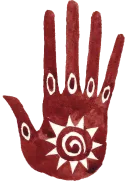 Окровавленная алая ладоньСимвол, богатый на толкования. Он отсылает к тому факту, что в орочьих венах течёт кровь демонов, и к тому, что орки изначально были сотворены для одной единственной цели — быть пажами, правой рукой волшебников. Но кроме всего прочего, длань как бы говорит всяк ищущему: «Мы — свободны!», сам жест означает «Никогда более!»