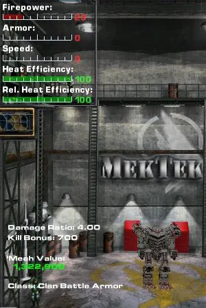 Отмечу пару моментов по ее представлению в игре. Для боевой брони (и пехоты) свое вооружение (с приставкой BA), к ним не подходит вооружение мехов. Верно и обратное.
