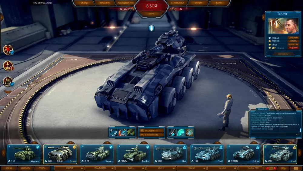 Систему прокачки в Metal War Online нельзя назвать оригинальной, но разработчики довели ее до идеального состояния. На первых порах игроку даются слабенькие машинки первого уровня, но затем, по мере участия в сражениях, он получает опыт, нужный для открытия новой техники и изучения разносторонних модулей, и кредиты, необходимые для покупки машин и запчастей. Прежде чем отправиться в сражение, игрок дополнительно может выбрать постоянное оборудование, дающее активные или же пассивные возможности, купить в магазине одноразовые расходники, а также раскрасить автомобиль по своему усмотрению. Все эти манипуляции проводятся в личном гараже, в котором игроку, помимо всех прочих занятий, позволено ознакомиться с перечнем ежедневных и еженедельных занятий, пообщаться с другими геймерами и соклановцами, посмотреть на статистику побед/поражений и так далее.