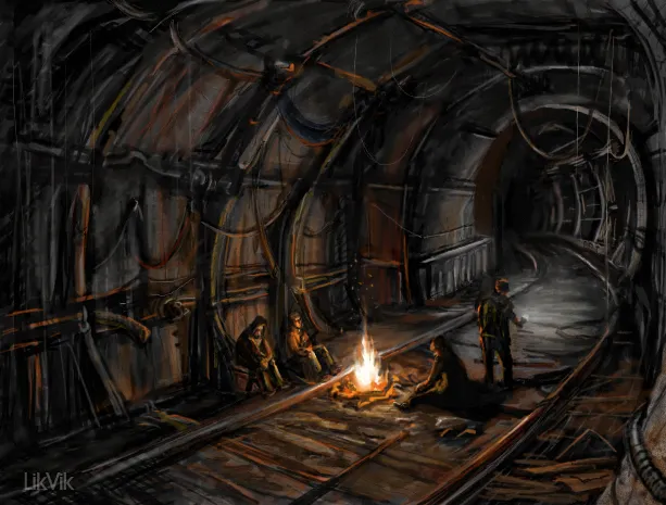 Дед с кряхтением улегся на продавленный топчан, что-то бормоча и вздыхая. Данила выбежал из небольшой комнатушки деда Мазая в темный и сырой туннель московского метро. Немногочисленные факелы скудно освещали коридоры, бросая отблески на болезненно бледные лица детей в рваных и залатанных одеждах. Ребятишки облепили Данила со всех сторон и стали наперебой расспрашивать и просить рассказать новую историю деда Мазая. Пока Данила рассказывал, приукрашивая и добавляя новые подробности в рассказ, на поверхности всходила Луна, мерно отсчитывая 340 день 2033 года.