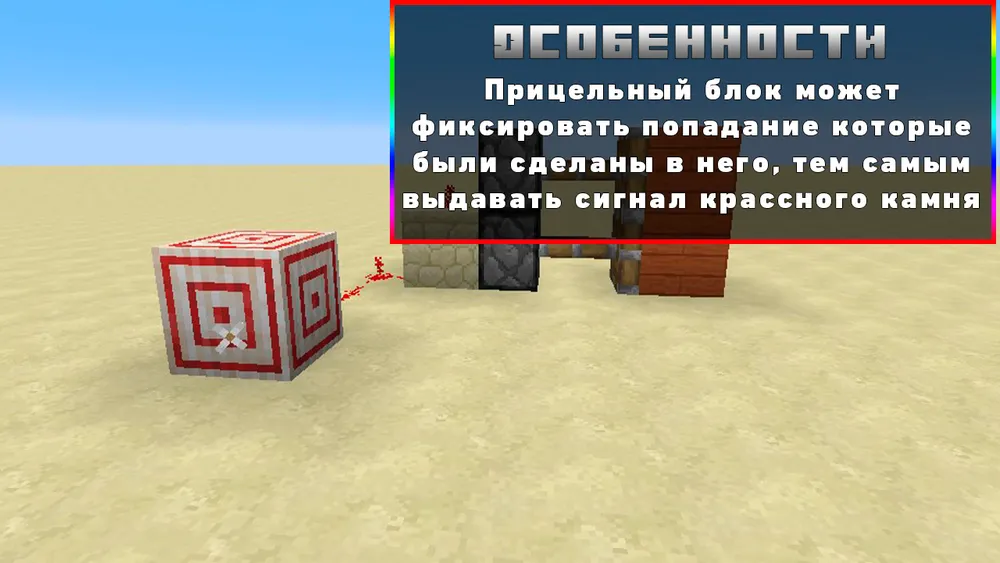 Мишень наделена рядом любопытных фишек, к примеру, она способна активировать два блока одновременно без применения вспомогательного редстоуна.