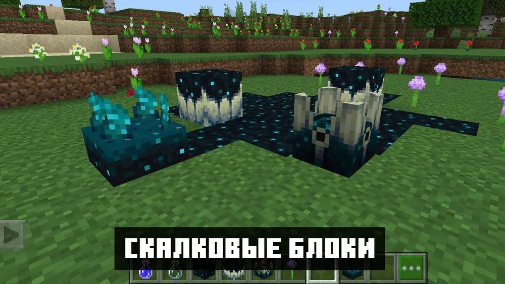 Скалковый блоки это новый материал в Майнкрафт ПЕ 1.19. Имеются различные типы скалка, этот блок будет генерироваться в биоме мрачных глубин. Каждый скалковый блок имеет свои уникальные свойства. Например из обычного скалка выпадает опыт при разрушение, но есть и другие блоки