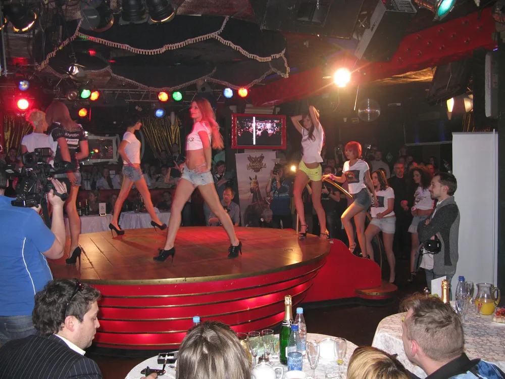 После танцев девчонки умелись переодеваться в касперские бикини, которые не пропускают вирусы и трояны, зато очень способствуют разглядыванию прекрасных телес. На какое-то время разговорчики в клубе утихли, а жюри пользовалось служебным положением и удачным расположением своей "ложи". Участницы между тем недрогнувшим шагом на во-о-о-о-от таких каблуках чеканили шаг по подиуму, периодически позируя для фотографов, коих, ессно, набралось вагон и две тележки. Ситуация с дефиле в купальниках в какой-то степени повторяла первый конкурс. Кто-то не терялся и тусовался на сцене не полной программе, посылая воздушные поцелуи и в первый ряд, и на галерку, а кто-то совершал марафон по сцене ("И чаво эти люди на меня уставились? О_О").
