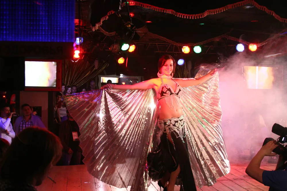 Лучший, на мой взгляд, выход был у Нади (Войны Империй). Во-первых, оченно красивый восточный костюм. Не могу сказать, что это неожиданное решение, но Надя в картинку вписалась весьма органично, я для себя это еще на фотках отметила. Ну, а там, где восточный костюм, там, сами понимаете, и танцы живота. Надя свою игру представила очень достойно, ни капли скованности не было, выход самый эффектный засчет костюма и свободы перед публикой.