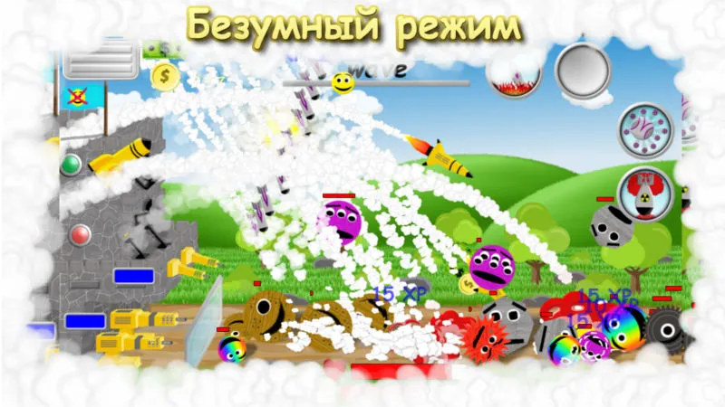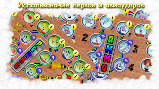 Также в безумном режиме во время игры падают бонусы которые если успеть собрать могут дать дополнительный урон пулемету или ракете, дополнительные пули при выстреле которые разлетаются в стороны либо дополнительные ракеты при пуске ракеты или просто опыт, деньги, золото.