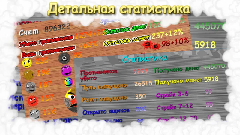 В конце раунда и по окончанию игры выдается достаточно детальная статистика по игре.