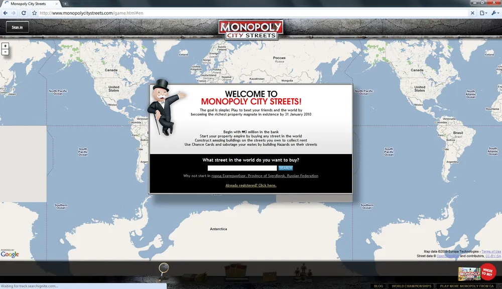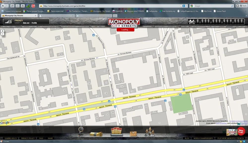 После первого запуска игры (около недели назад) ажиотаж оказался таким, что сервера слабо справлялись с загрузкой. Также было выловлено множество способов мошенничества. В данный момент происходит полный рестарт игры (полное обнуление) вместе с некоторыми улучшениями. Рестарт начался примерно в 6 часов вечера по МСК и продлится от 12 до 24 часов. Так что после рестарта у вас будет шанс купить улицу, которую захотите и начать свой путь к богатству.