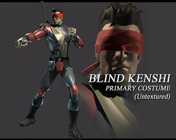 Далеко не нов гиммик слепого виджиланте. В массовой культуре существует как минимум два очень известных образа слепых борцов с несправедливостью - Затоичи и Сорвиголова. От первого Кенши досталось мастерство владения мечом, от второго похожий дизайн костюма. Кенши носит красно-черные одежды, непременные атрибуты - белая лента с изображением дракона и наглазная красная повязка. И если первоначальный вид героя, практически не претерпел каких-то изменений до выхода игры, то его имя менялось дважды. Сначала бойца звали «Слепой Ги», затем «Слепой Кенши», но, в конце концов, он появился на экране выбора персонажей просто как «Кенши». Само имя «Кенши» происходит от японского «Kensei» - «святой меч».
