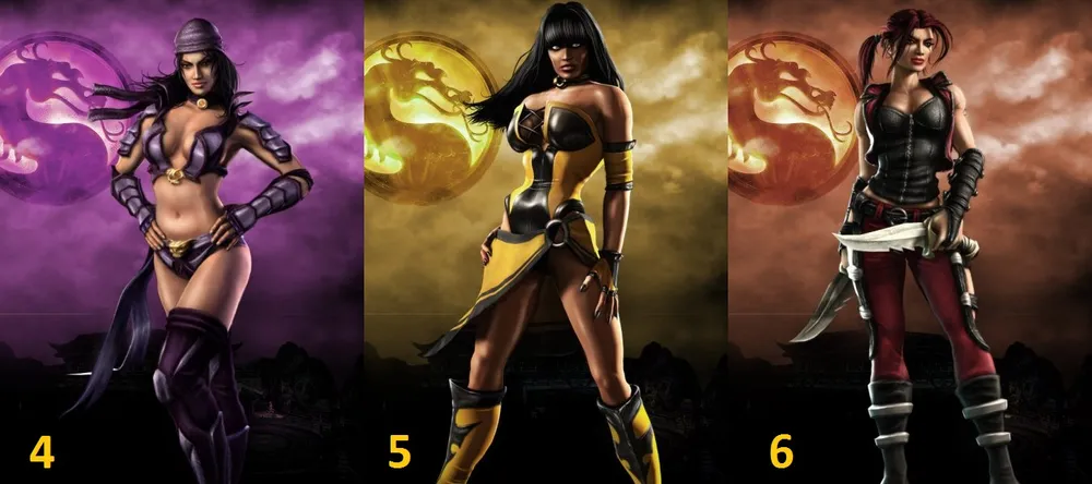 В то же время нагината генерала, уютно разместилась в теле жительницы Внешнего Мира - Ли Мей (4). Героиня должна была появиться закованной в цепи на арене Шао Кана, но была вырезана из финальной версии игры. Вместо неё процедуре «оцепенения» подверглись эденийка Таня (5) и член Черного Дракона Кира (6).