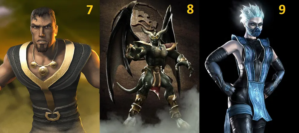 В видениях Рэйдена появляется главный герой «Mortal Kombat: Armageddon» - Тейвен (7). Помимо него, там мелькает один из основных антагонистов серии - бывший Император Внешнего Мира, известный как Онага (8). Ученица Саб-Зиро Фрост (9) также оказалась в воспоминаниях бога грома, помимо этого она появляется в базе данных Кибер Саб-Зиро, и её можно увидеть сражающейся на заднем плане на аренах Яма II и Сад Шан Цунга.
