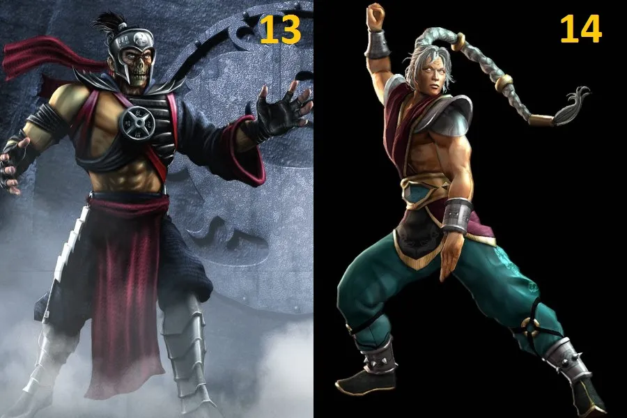 Кстати о сражающихся, иногда в схватке принимает участие Дэйгон (10) - главный антагонист «Mortal Kombat: Armageddon». Драться он любит с генералом армии Внешнего Мира - Рейко (11), который к тому же увековечен в статуе в Садах Шан Цунга. Помахать кулаками на заднем плане не прочь и демоница Сарина (12).