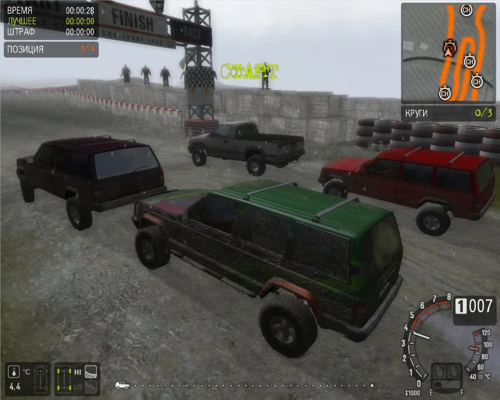 Тюнинг в игре присутствует не для галочки, можно усилить кузов автомобиля, добавить лошадок и проходимости, кстати, к тюнингу нужно подходить разумно, не всегда самое дорогое значит самое лучшее. Для скоростных заездов желательно прокачать двигатель по полной, а в триалах и ориентировании двигатель лучше оставить как есть, так как автомобиль с мощным движком будет пробуксовывать. Кроме тюнинга двигателя в игре присутствует выбор покрышек и настройка подвески.