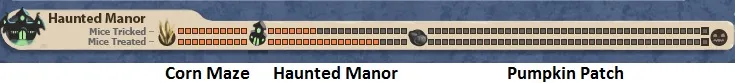 Изначально вы начинаете в Corn Maze и при поимке в этой локации 10 мышей на Ghoulgonzola cheese и 10 на Candy Corn cheese автоматически переходите в следующую локацию - Hounted Manor.