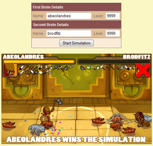 Симулятор боя для игры My Brute готов к использованию. Вводите имена и уровни буртов, запускайте симуляцию и проверяйте результаты. Уникальная анимация и разнообразие оружия делают процесс захватывающим. Тестируйте и сообщайте о баги разработчикам.