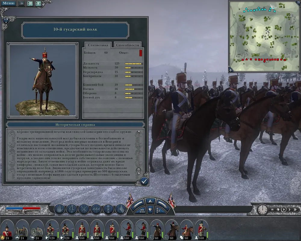 10-й гусарский - это, скорее, конные застрельщики, а не гусары. Бьют на 125 с меткостью 30 (мазилы!). Хорошо справляются с шассерами, например.