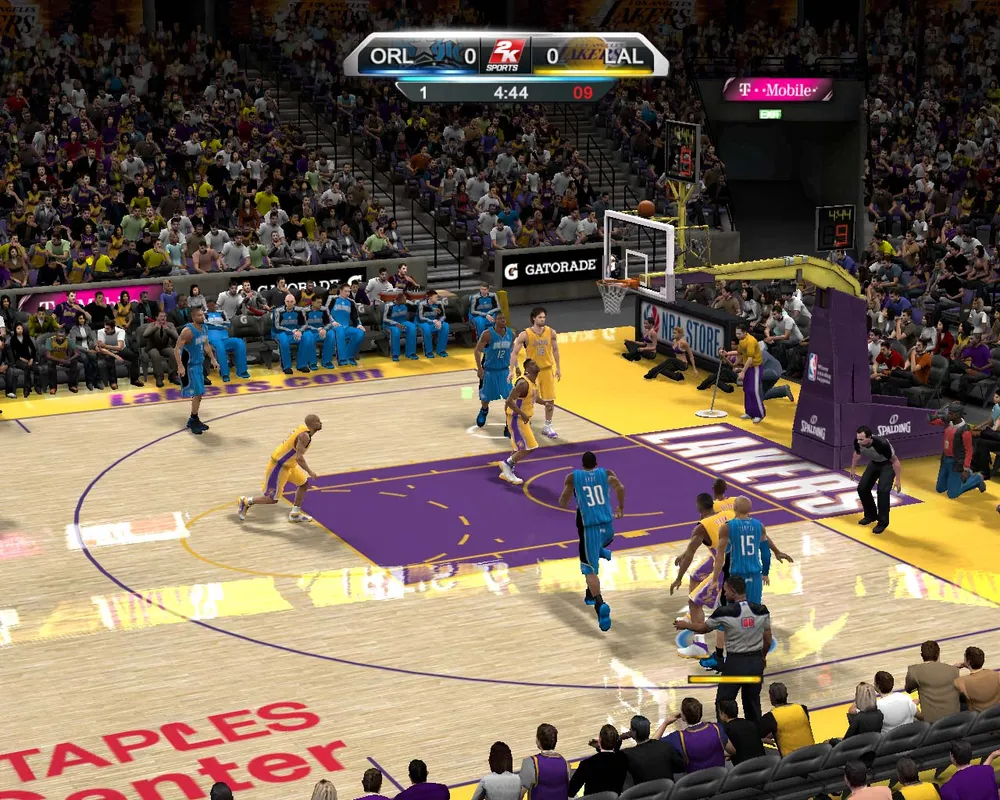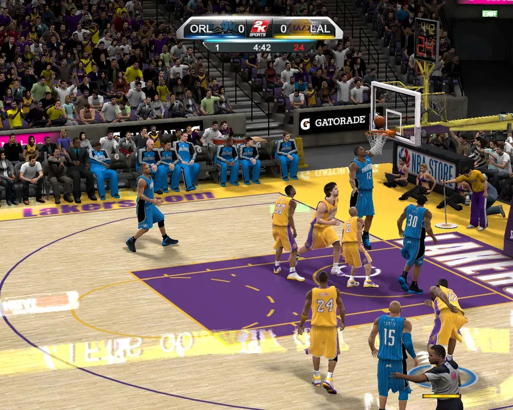 Графика заметно шагнула вперед: модели баскетболистов, а особенно звезд, прорисованы с точнейшей тщательностью. Тоже самое можно сказать и о болельщиках - если в версии 09 можно было увидеть достаточно большое количество клонов на трибунах, но сегодня эта проблема решена. Лестные слова можно сказать и в сторону анимации - четко, плавно, красиво. Однако встречаются эпизоды, когда спортсмены слишком топорно исполняют обводку или какой-то баскетболист слишком широко раскроет глаза (я серьезно, не знаю, с чем это связано, но глядеть без смеха на вылупевшего глаза Ламара Одома невозможно).