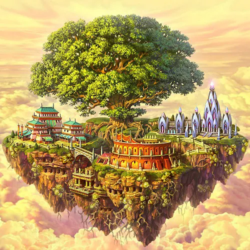 Спаслось нас немного - всего пара сотен жителей некогда процветающего города. Мы столпились недалеко от трещины и онемев наблюдали, как наш "остров" возносится в небеса. Соседние, вырезанные из земли "островки" один за другим поднимались вслед за нашим...